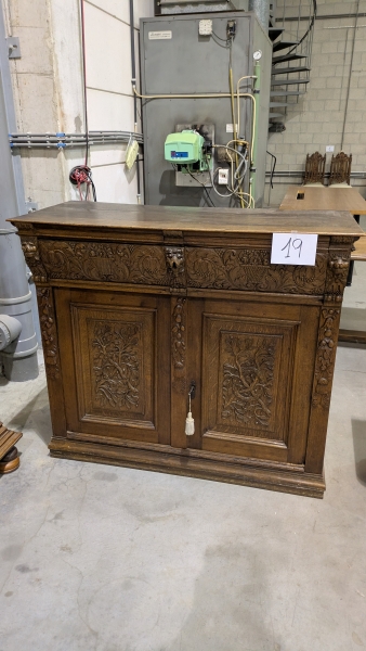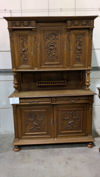 kavel 20: een gesneden houten dubbele kast met 5 deuren en 2 laden (150x54x225)
