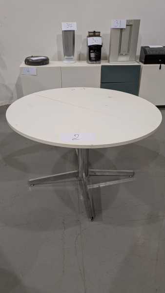 Lot 2: een ronde tafel van wit hout met verlengstukken