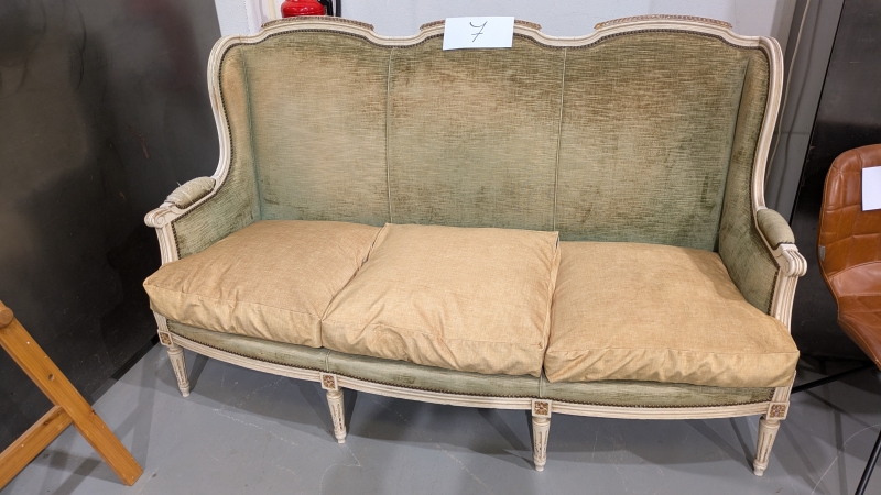 Lot 7: een 3-zitsbank in wit hout en groene stof