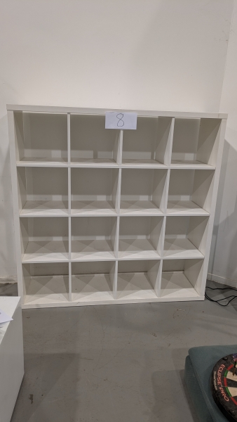 Lot 8: een witte plank met 16 vakken van IKEA