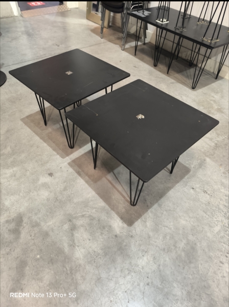 2 kleine bijzettafeltjes van metaal en glas