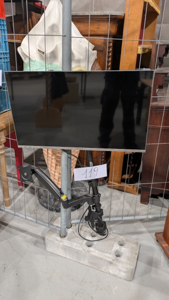 Lot 173: een lot beschadigde beeldschermen + voetstuk op wieltjes