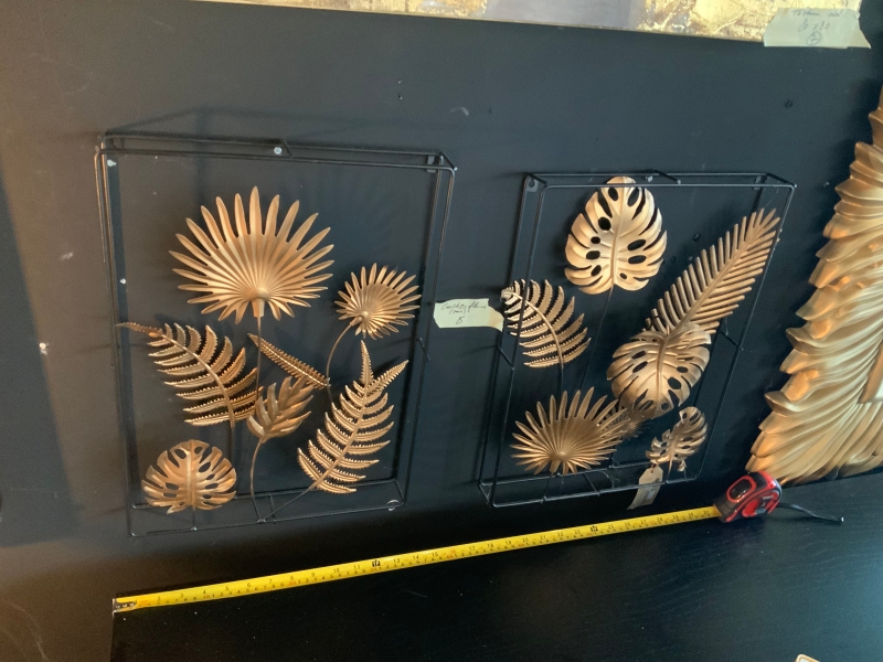 Paire d'encadrement en métal noir avec fleurs en métal doré
