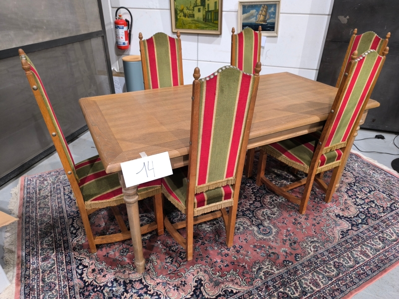 Lot 14 - een rechthoekige tafel met 6 stoelen