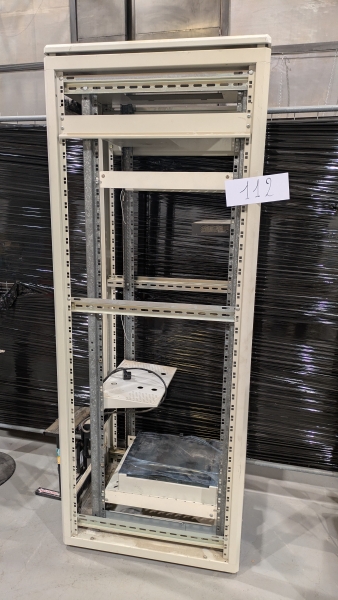 Lot 173: een lot beschadigde beeldschermen + voetstuk op wieltjes