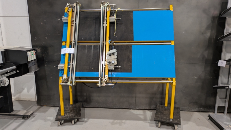 Lot 95: een blauwe metalen bijzettafel op wieltjes